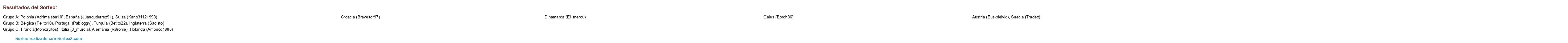 - Suiza (Kano31121993) Croacia (Braveitor97) Dinamarca (El_mercu) Gales (Borch36) Austria (Euskdeivid)