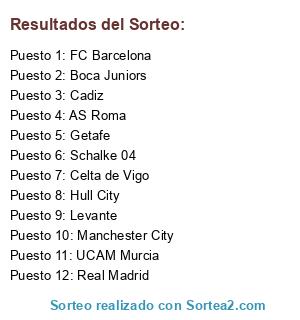 Lista de participantes: Borussia Dortmund, UCAM Murcia, Chelsea, Arsenal, Atlético de Madrid, Boca Juniors, AS Roma, Hull City, Levante, FC Barcelona, Celta de Vigo, Manchester City, Manchester United, Sevilla, PSG.