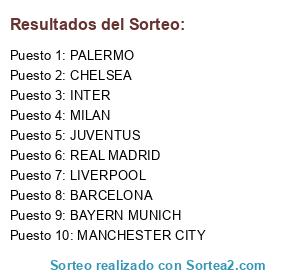 Lista de participantes: INTER, JUVENTUS, REAL MADRID, LIVERPOOL, BARCELONA, CHELSEA, MANCHESTER CITY, MILAN, BAYERN MUNICH, PALERMO.