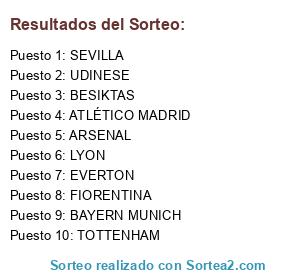 Lista de participantes: TOTTENHAM, ATLÉTICO MADRID, BESIKTAS, ARSENAL, SEVILLA, FIORENTINA, LYON, BAYERN MUNICH, EVERTON, UDINESE.