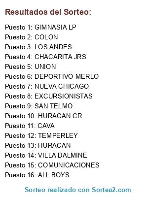 Lista de participantes: CHACARITA JRS, GIMNASIA LP, VILLA DALMINE, COMUNICACIONES, UNION, TEMPERLEY, COLON, CAVA, SAN TELMO, ALL BOYS, HURACAN, DEPORTIVO MERLO, HURACAN CR, NUEVA CHICAGO, EXCURSIONISTAS, LOS ANDES.