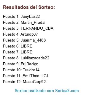 Lista de participantes: LIBRE., Condorsargentina, FranCarp934, CristianDS_, Aricasla89, RodriCuervo10, LIBRE, FedeKoala321, Choquetitans23, Cabj--1905, EZIOBETO360, Pasquenze.
