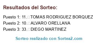 - Puesto 1: 11. TOMAS RODRIGUEZ BORQUEZ