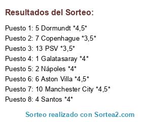 Resultados del sorteo: