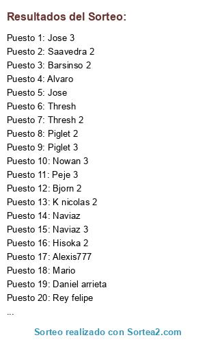Resultados del sorteo: