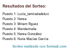 Lista de participantes: Lucía_lamiradadeluci, Mistry Desorden, Soraya1889, Nerea González, Mandarinalia, Joanna Sz, Miriam Rguez, Silvia Bartolome, Nuria Macías García, Nuria , Lau Jofre, Raquel BS, Chispa Chispy, Nerea.