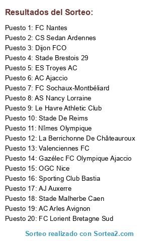 Lista de participantes: Sporting Club Bastia, OGC Nice, FC Lorient Bretagne Sud, FC Sochaux-Montbéliard, ES Troyes AC, Stade Brestois 29, Stade De Reims, AC Ajaccio, AS Nancy Lorraine, Valenciennes FC, FC Nantes, Stade Malherbe Caen, Dijon FCO, AC Arles Avignon, Gazélec FC Olympique Ajaccio, Le Havre Athletic Club, Nîmes Olympique, La Berrichonne De Châteauroux, AJ Auxerre, CS Sedan Ardennes.
