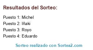 Lista de participantes: Cesar, Boteja, Royo, Michel, Iñaki, Eduardo, Cuñado, Castillo.