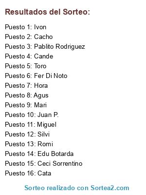 Lista de participantes: Fer Di Noto (3 participaciones), Romi (3 participaciones), Toro (3 participaciones), Ceci Sorrentino (3 participaciones), Mari (3 participaciones), Edu Botarda (3 participaciones), Pablito Rodriguez (3 participaciones), Ivon (3 participaciones), Cata (3 participaciones), Hora (3 participaciones), Agus (3 participaciones), Silvi (3 participaciones), Juan P. (3 participaciones), Cacho (3 participaciones), Miguel (3 participaciones), Cande (2 participaciones), Cande.