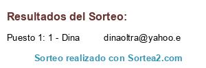 Lista de participantes: 1 - Dina dinaoltra@yahoo.e, @maryprieto_20, @debbieguay, @atxurri, @shantiachi, @candyvaquero, @monicasado97, @lepetitecoco, @consaboracanela_, @nosoyunangel2, @guindillaycanela, @cristi_cp, @sweetcoloursbakery, @magdalenaschocolate, @leticia.gl321, @sheilasegarra, @anyol9, @Marinaacuario, @villatoro, @starerojo, @copiandorecetas, @eltelardemiabuela, @mamayce, @susana.santos.sanchez, @bocata_jam, @ahlgamw, @jessica2210, @xabalina, 29 - Inma imhermo(arroba)hotmail.com, 30 - Pilar Pilar_majuelo@movistar.e, @verocs_5, @marismita, @marhya, @ieltro.felt.feltro, @mfernandezlb, @begogascon, @cacharreandoenmicocina, @xandratelier, @airamana20, @msevilladp, @samarbe2, @aliciapt2002, @beamarijuan, @espejitosonia, @anuki70, @misarroca, 47 - Marta martagon (arroba) gmail.com, @hhills84, @evamcancio, @viriguini, @geep890, @baybaycreaciones, @v_virginia79, @pilar.arnanz, @lidia.casademont, @mariacocinillas, @evy300782, @Jenniferglezes, @neli_03, @cakescookiesandmuffins, @mirianrocu, @patyfer78, @nuria_bcn133, @leir7oceam, @artesaniadefieltro, @rolopezcabanas, @henerbenito, @gatonegrol, @seleneouioui, @yani2105, @miriam, @beatrizestudiol1, @xrotger, @mariadelmar.garcia74, 75 - Montse avistademo(arroba)gmail.com, @almorin1961.