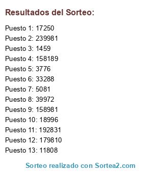 Resultados del sorteo: