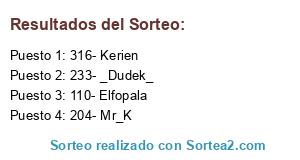 Lista de participantes: 1- tordenbro, 2- luzma1, 3- h3ku, 4- BlaueDivision, 5- BOLIKO, 6- eminem2k3, 7- pablito75, 8- gannicus, 9- 737-800, 10- BreakZ, 11- Standby, 12- Vandroy, 13- regonza, 14- Shureño, 15- El_J4v1, 16- DaniPB, 17- pkjn, 18- Ben.Steel, 19- Lucky150, 20- unrealer, 21- plaskiiis, 22- Brendll, 23- Aritz3, 24- Artlu, 25- Sr. Fry, 26- Hume, 27- Specnaz, 28- Urban_Rally, 29- ProXyLaTe, 30- siempredelao, 31- FaTaLiTiKo, 32- ladooscuro, 33- CiertoFieltro, 34- kn9491, 35- colmic, 36- MeZdO, 37- Keviar, 38- FranFue, 39- BenderMan, 40- Peter Answers, 41- Fapoleón, 42- sargentogato, 43- gery, 44- Finidi21, 45- Skelzer, 46- Fede_rom, 47- Ionutz49, 48- Whiteboy, 49- romanturbo, 50- Vossler, 51- Juliagu, 52- Endgame, 53- .Frigopie., 54- pekesaurio, 55- Air Adri, 56- blankitoz, 57- kami-a, 58- qubits, 59- pioner, 60- RockRules, 61- koneX, 62- Spit, 63- Chesek, 64- koala, 65- Troy McClure, 66- Nikex7777, 67- Vrael, 68- ryan86, 69- mnu, 70- fjarias85, 71- pescasub88, 72- Yoshimitsu, 73- Malcolm_X, 74- El Pipone, 75- Chinca666, 76- ~Sk~, 77- Joseskd, 78- djegox, 79- jowin, 80- evolucion, 81- Apollo, 82- juanikiki, 83- victoter, 84- yujo, 85- Barra.gan, 86- Fenni, 87- Indajaus, 88- Rszr, 89- shurmurdok, 90- _Flo_, 91- Ingenieril, 92- Davile88, 93- gdeSign, 94- Thrasher, 95- mikelinho_19, 96- xevigas, 97- Clan Cucky X, 98- pompete, 99- xikillopajer0, 100- TheSalas, 101- solomo, 102- Sanguinius, 103- MaidenKun, 104- Buitrasx, 105- xar_69, 106- cosworth320, 107- tizza, 108- jdmcrew, 109- MsSyila, 110- Elfopala, 111- atmguerras, 112- Grumetelas, 113- perrovaca, 114- Adept, 115- Link91, 116- ivan159, 117- Yourbeast, 118- Deadmau.5, 119- ortroi, 120- SLiaDeR, 121- Javikas13, 122- david10_91, 123- Sobietico, 124- jubilao, 125- Templario1993, 126- Rised1, 127- Headsh0t, 128- Sejirax, 129- Observatore, 130- Ratzinger_Zeta, 131- Mediaval ARM, 132- RuffneckHK, 133- Pondere, 134- ZebroN, 135- PACHOMAN7, 136- MrPresident, 137- VaGoH, 138- CoPo87, 139- Fakenickk, 140- dazzarm, 141- aluser, 142- Barra.gan, 143- thrash_attack, 144- deltaforce1987, 145- Cacodemon, 146- RePacK, 147- kapelocmax, 148- shaderyt, 149- legolas16v, 150- drccc, 151- c4s1, 152- TRacing, 153- Escombrody, 154- DarkMoriah, 155- DeAtH_JoCkEy, 156- Dave., 157- xpecteR, 158- MeNxU_CdB, 159- Barra.gan, 160- cáceres_19, 161- Luser, 162- oftio, 163- Miru, 164- Tracy McGrady, 165- viriviki, 166- Shka, 167- ArcanineGang, 168- Myrmidon89, 169- DelitoNocturno, 170- Slaminer, 171- pipo62, 172- MrPelotazo, 173- bbordie, 174- Miss Lovett, 175- colokao83, 176- r1ckon3, 177- loperins, 178- Mortim3r, 179- jesus_alonso, 180- r1ckon3, 181- Titanlux, 182- Lockheed, 183- JackSkellington, 184- jesus_alonso, 185- slek, 186- srmanuel, 187- Perolin, 188- KaDoS, 189- adolfillo, 190- gREENNNNN, 191- MisterMister, 192- pr0orz1337, 193- Skullkid, 194- topiyo, 195- Xethar, 196- chusmatrom, 197- 19AlbertO94, 198- CodeShell, 199- stone, 200- +SPQR, 201- shekel, 202- George Stobbart, 203- Berni, 204- Mr_K, 205- _Teko_, 206- DrZoius, 207- Dozze, 208- Knaven, 209- jesus_alonso, 210- Bananaman, 211- zoatr, 212- e0n, 213- Naedor, 214- 77veces7, 215- Zanatos, 216- Powi, 217- Quattro20v, 218- Repanocho, 219- megaman, 220- Expachugator, 221- cesar_vk, 222- Pr0totype, 223- Velocirraptor, 224- Nimlot, 225- SergioHaz, 226- Stenka, 227- Trolaso, 228- draker, 229- rapindrive, 230- Fityhh, 231- Juliagu, 232- Karry, 233- _Dudek_, 234- Skril£ex, 235- Ruedaslocas, 236- caramel, 237- reos75, 238- Torreiglesias, 239- perikote28, 240- two-pamela, 241- frambo, 242- Astrero, 243- Jack_Daniels, 244- eR_pOty, 245- alegan87, 246- franns, 247- carlosalberto46, 248- oscar16, 249- Fuji_, 250- Queaven, 251- KikeXan, 252- TioGazpacho, 253- Timothy, 254- Sixpounder, 255- sus0ne, 256- sabi, 257- KIMAIM, 258- sapkiller91, 259- alvaretion19, 260- Ayesito, 261- shuralex, 262- Nzxt, 263- Toni_follonero, 264- yampa92, 265- G0uki, 266- pornostart, 267- Bure, 268- marcucho, 269- Cond0r, 270- andrw3, 271- Gnomarro, 272- sp_pablo, 273- YuR1, 274- Dawidek, 275- shurmalkom, 276- knives69, 277- Lobo007, 278- Polybius, 279- Malik, 280- javito852, 281- Cabramuelle, 282- Santurce, 283- victoter, 284- D0NV1T0, 285- Portu, 286- El Pipone, 287- UnderxPc, 288- MaYrO, 289- JM_Master, 290- Dado7, 291- Ainkurn, 292- andalusi, 293- Maguila Gorila, 294- alekscolors, 295- Atropos91, 296- xamus99, 297- Optimus_6, 298- Dani350z, 299- -PuKi-, 300- liks_ods1, 301- .Rompeconejos., 302- breilthunder, 303- txumino, 304- hazel, 305- medjai, 306- sergio_twuister, 307- Dj Kristian, 308- detective, 309- chemikaRMA, 310- DecapitadoT, 311- kevin_93, 312- FUCK YEA., 313- Seyber, 314- naked, 315- legolas16v, 316- Kerien, 317- Ladilla Returns, 318- bilbi, 319- alexito23, 320- hyu2, 321- Rafitcu, 322- Dimoca, 323- amezqueta, 324- ismailove, 325- sonicfran17, 326- leandrogado, 327- Alex_Mahone, 328- XPeReNCe, 329- mi_bmw_m3, 330- zlatan0810, 331- Joseph Arctico, 332- $3rG¡o.