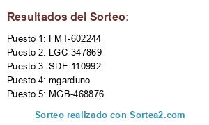 Este sorteo ha sido certificado por Sortea2. Sortea2 garantiza que: