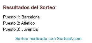 Lista de participantes: Atletico, Juventus, Barcelona.