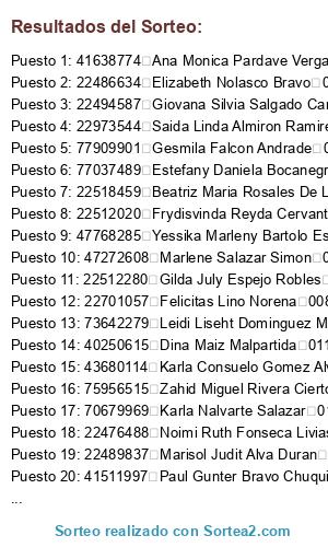 Resultados del sorteo: