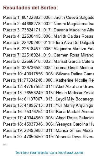 - Puesto 22: 22497064 008 Grimanesa Rosa Anaya Espinoza