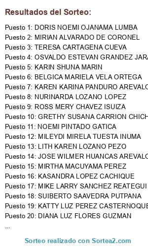 - Puesto 16: ROCIO YARALIN SEGUNDO MIRABAL