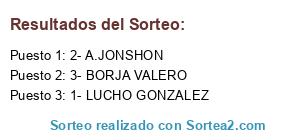 Lista de participantes: 1- LUCHO GONZALEZ, 2- A.JONSHON, 3- BORJA VALERO.