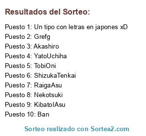 Lista de participantes: ShizukaTenkai, Nekotsuki, Kawaki, KibatoIAsu, YatoUchiha, Un tipo con letras en japones xD, Grefg, Akashiro, RaigaAsu, JEVD, TobiOni, BAN, Raz, Shizuya, Ban.