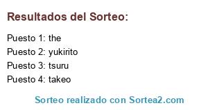 Lista de participantes: kevin, tsuru, sakaiDoku, Chiro, the, gunayu, takeo, andres, pupolap, auspiciado1, deadsoul, filo, kiiroi, yukirito, shinichiuchiha, selupaco, maty.
