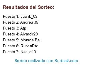 Lista de participantes: Nasito10, Monroe Bell, Andreu 35, Atp, Alvarolr23, Juank_09, RubenRtx.
