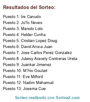 Accesibilidad del sorteo: El sorteo es público. Todo el mundo podrá acceder a él desde el listado de sorteos guardados.