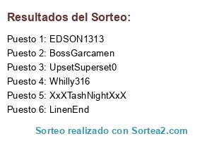 Lista de participantes: LinenEnd, BossGarcamen, XxXTashNightXxX, UpsetSuperset0, EDSON1313, Whilly316.