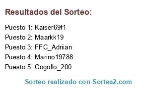 Lista de participantes: Kaiser69f1, FFC_Adriian, Cogollo_200, Marino19788, Maarkk19.