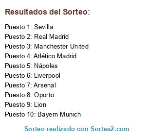Lista de participantes: Real Madrid, Atlético Madrid, Sevilla, Arsenal, Liverpool, Manchester United, Nápoles, Bayern Munich, Lion, Oporto.