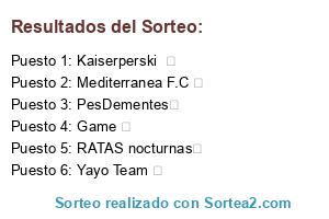 Lista de participantes: Kaiserperski ✅, CHAPES DC ✅, ExBilbo Team✅🙊, Game ✅, Los Karmelos ✅, Mediterranea F.C ✅, PesDementes✅, Targaryen✅, Yayo Team ✅, Nottingan Miedo✅, The Valeros✅, RATAS nocturnas✅.