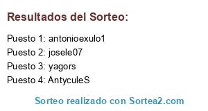 Lista de participantes: AntyculeS, mefundoaldoctor, Natch000, jordiet28, yagors, morafrades, antonioexulo1, josele07.