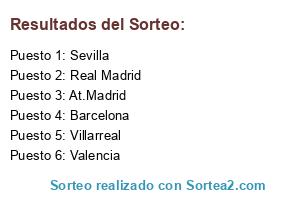 Lista de participantes: Barcelona, Valencia, Sevilla, Villarreal, Real Madrid, At.Madrid.