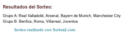 Lista de participantes: Arsenal, Juventus, Manchester City, Bayern de Munich, Real Valladolid, Benfica, Roma, Villarreal.