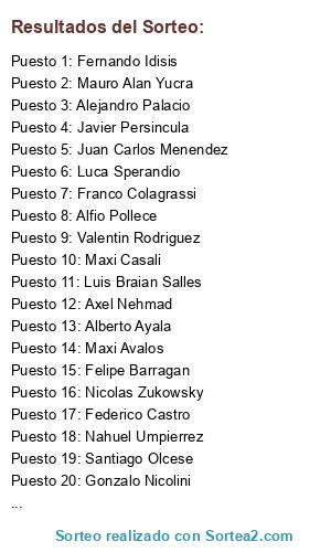 Resultados del sorteo: