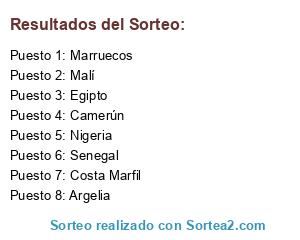 Lista de participantes: Argelia, Camerún, Costa Marfil, Egipto, Malí, Nigeria, Marruecos, Senegal.