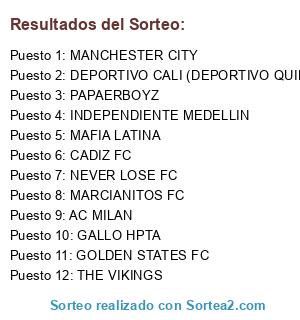 Resultados del sorteo:
