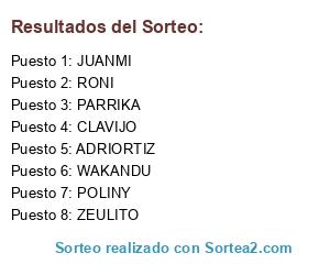Lista de participantes: JUANMI, POLINY, ADRIORTIZ, CLAVIJO, RONI, WAKANDU, PARRIKA, ZEULITO.