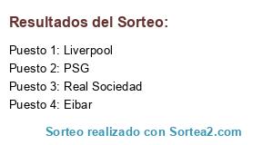 Lista de participantes: Real Sociedad, PSG, Eibar, Liverpool.
