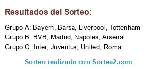 Lista de participantes: Nápoles, Arsenal, Tottenham, United, Roma, Juventus, Madrid, Barsa, BVB, Inter, Bayern, Liverpool.
