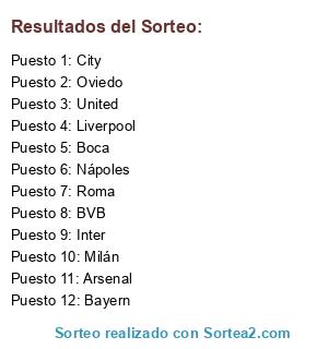 Lista de participantes: Milán, Roma, United, City, Arsenal, BVB, Boca, Nápoles, Bayern, Inter, Oviedo, Liverpool.
