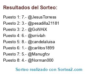 Lista de participantes: 1.- @carlitos1899, 2.- @GoNHiX, 3.- @pesadilla21181, 4.- @Norman000, 5.- @Manugfcv, 6.- @srrivlah, 7.- @JesusTorress, 8.- @candelaluisa.