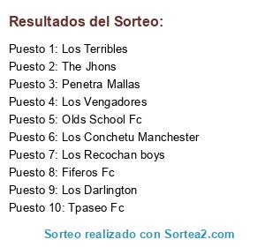 Lista de participantes: Los Terribles, Los Vengadores, Penetra Mallas, Los Darlington, Los Recochan boys, Los Conchetu Manchester, Tpaseo Fc, Fiferos Fc, Olds School Fc, The Jhons.
