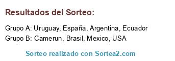 Lista de participantes: Brasil, Argentina, España, Uruguay, Camerun, USA, Mexico, Ecuador.