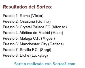 Lista de participantes: Sevilla F.C. (Sergi), Crystal Palace FC (Alfonso), Osasuna (Gonhix), Roma (Víctor), Atlético de Madrid (Manu), Elche (Luckylag), Manchester City (Carlitos), Málaga C.F. (Miguel).