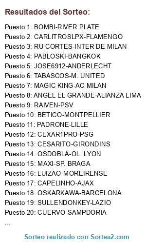 Resultados del sorteo: