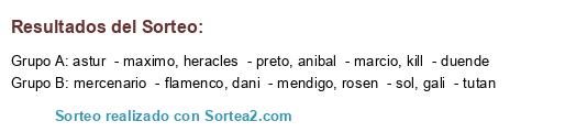 Lista de participantes: kill - duende, astur - maximo, dani - mendigo, mercenario - flamenco, gali - tutan, rosen - sol, heracles - preto, anibal - marcio.