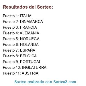 Lista de participantes: FRANCIA, HOLANDA, ALEMANIA, DINAMARCA, INGLATERRA, BELGICA, PORTUGAL, NORUEGA, ESPAÑA, ITALIA, AUSTRIA.
