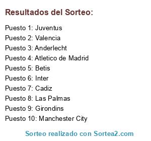 Lista de participantes: UNION ESPAÑOLA, MANCHES TER CITY, ROMA, CHELSEA, LAS PALMAS, LEIPZIG, SEVILLA, LIVERPOOL, NEWCASTLE, PSG.