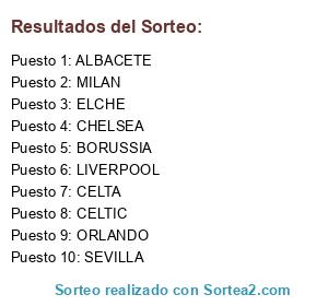 Lista de participantes: CELTA, SEVILLA, LIVERPOOL, CHELSEA, MILAN, ORLANDO, ELCHE, CELTIC, BORUSSIA, ALBACETE.