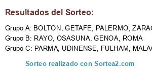 Lista de participantes: BOLTON, OSASUNA, MALAGA, PARMA, ZARAGOZA, FULHAM, RAYO, ROMA, PALERMO, UDINENSE, GETAFE, GENOA.